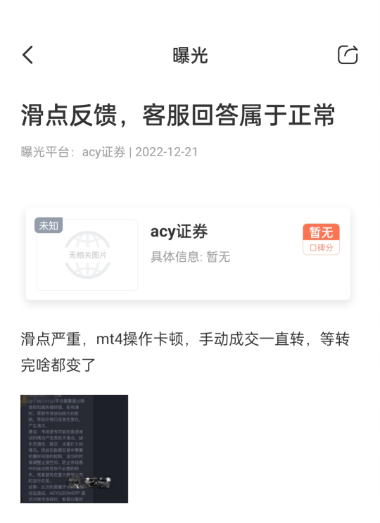 然而,ACY证券的问题还不止出金延迟一个,看看最近爱汇查收到的一条其用户的曝光:“滑点严重,MT4操作卡顿。手动成交一直转,转完啥都变了”。投诉到平台客服,客服回答倒是“仔细”,长篇大论一番后给出的结论却是“此次是属于市场波动造成……ACY都是以最好的价格给客户成交”。