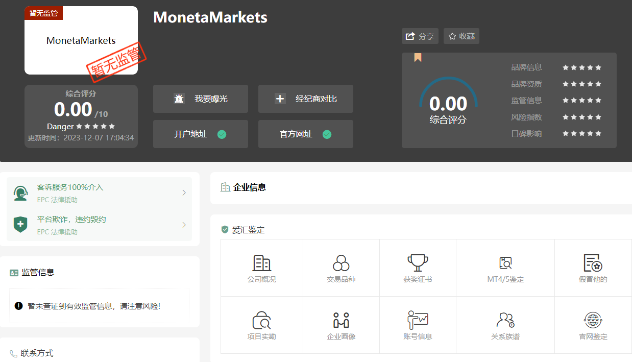 爱汇查拥有专业的分析团队,他们对外汇市场和各类交易平台有着深入的了解和研究。对于Moneta Markets亿汇外汇,爱汇查团队通过大量的数据收集和分析,揭露了其高频交易陷阱和出金困境背后的真相。他们将这些信息整理成详细的报告,发布在爱汇查平台上,让广大投资者能够清晰地了解该平台的真实面目。